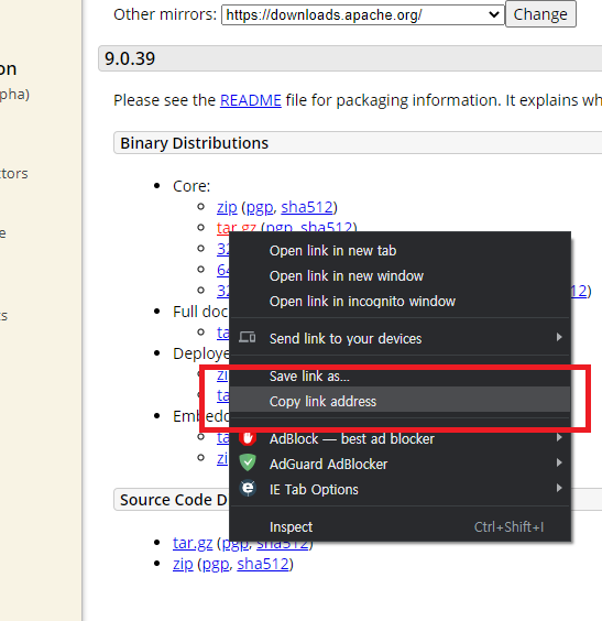 Tomcat 압축파일 다운로드 및 압축해제