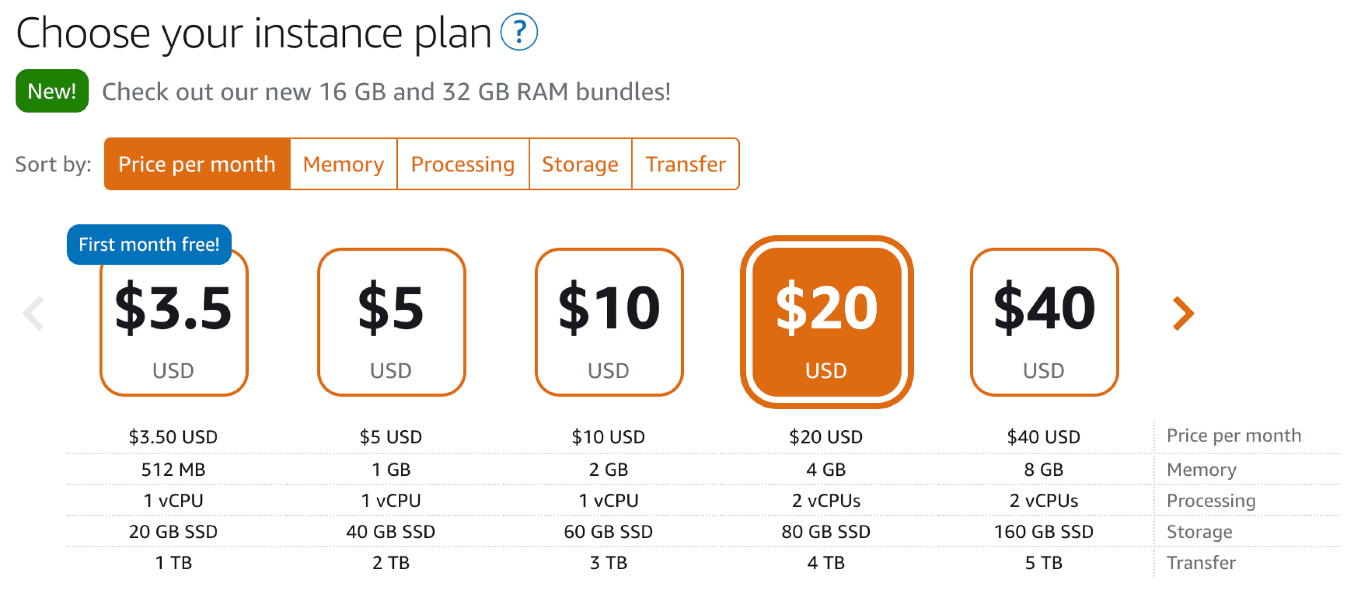 여기선 AWS Lightsail (opens new window)에 설치하는 법을 소개하며 한 달 동안 가상머신을 사용했을 때 $20, 하루 동안 실습할 경우 1,000원 이하의 비용이 발생합니다.