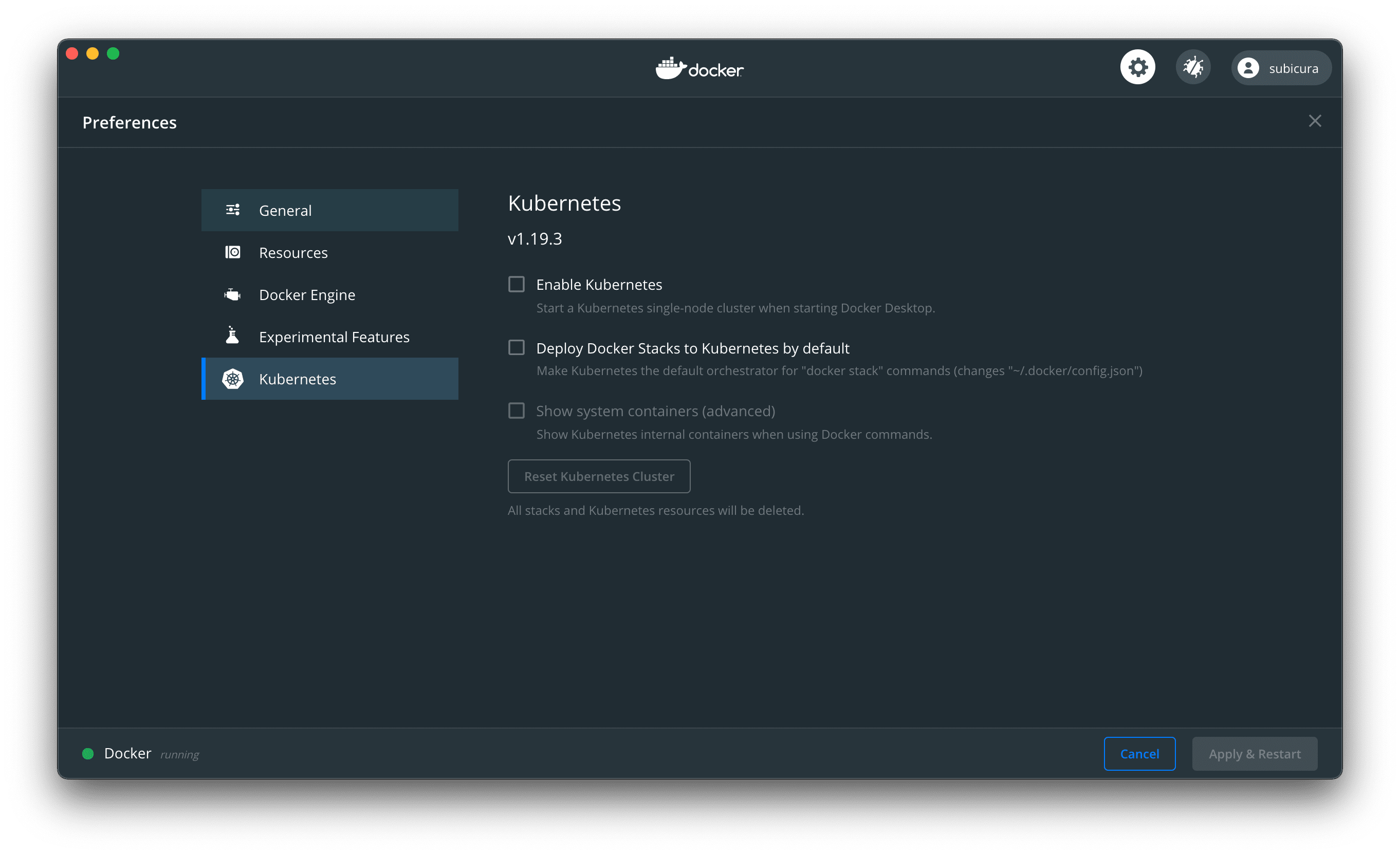 docker for desktop에서 쿠버네티스 클러스터를 활성화할 수 있습니다.