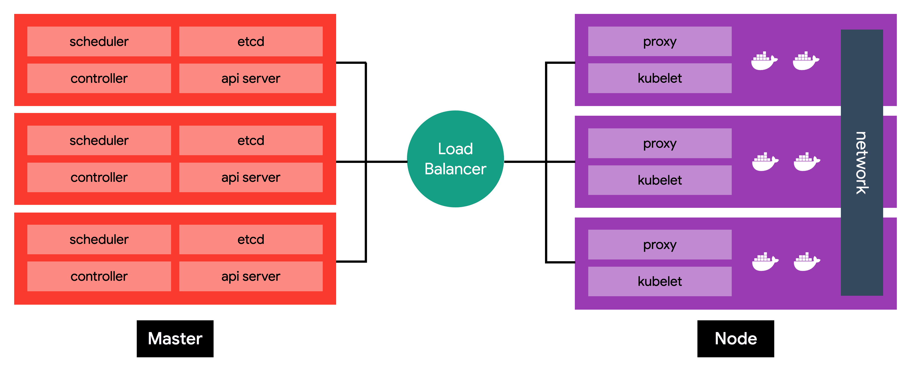 쿠버네티스를 운영환경에 설치하기 위해선 최소 3대의 마스터 서버와 컨테이너 배포를 위한 n개의 노드 서버가 필요합니다.