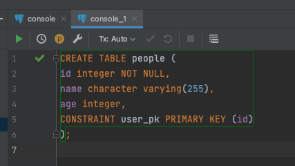 새로 생성한 데이터베이스에서 console을 새로 열어 테이블을 생성합니다.