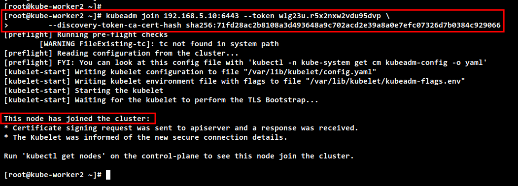 다음으로 "kube-worker2" 서버로 이동하고 "kubeadm join" 명령을 실행하여 "kube-worker2"를 Kubernetes에 추가합니다. 무리.