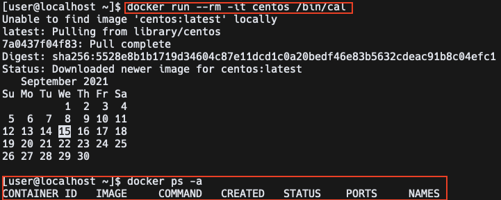 - --rm 옵션으로 컨테이너 종료 시 자동으로 삭제하도록 설정