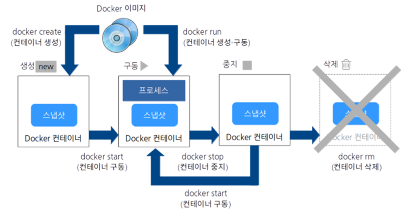 - 정지된 컨테이너를 시작할 때 start 명령을 사용