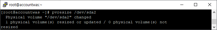 pvresize 후 pv 확인 해보면 아래와 같이 사이즈가 늘어난 것을 확인 할 수 있다.