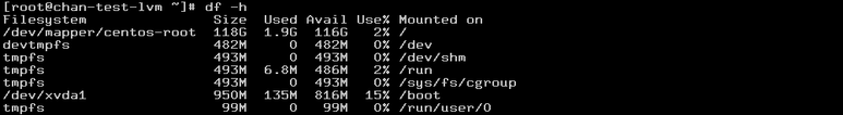 /dev/mapper/centos-root 118G 1.9G 116G 2% /