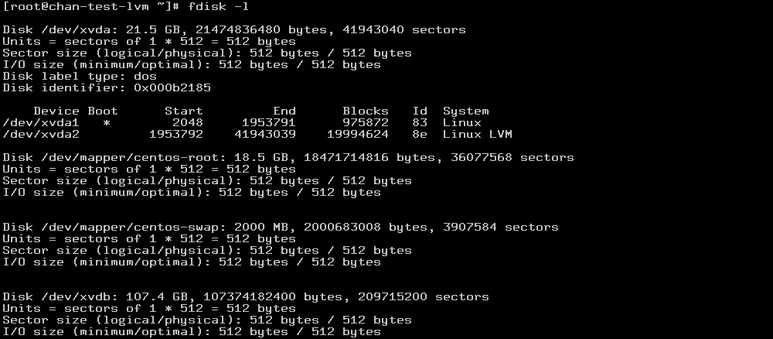 Disk /dev/xvdb: 107.4 GB, 107374182400 bytes, 209715200 sectors