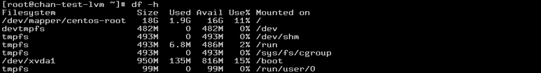 /dev/mapper/centos-root 18G 1.9G 16G 11% /