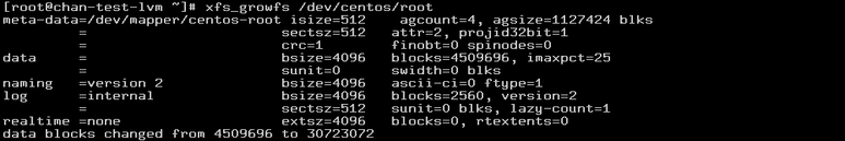 # xfs_growfs /dev/centos/root