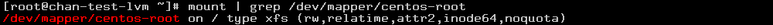 /dev/mapper/centos-root on / type xfs (rw,relatime,attr2,inode64,noquota)