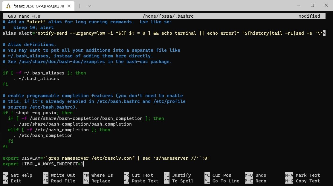 export DISPLAY="`grep nameserver /etc/resolv.conf | sed 's/nameserver //'`:0"