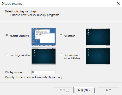 Multiple windows를 선택하고 Display number에 0을 입력합니다.