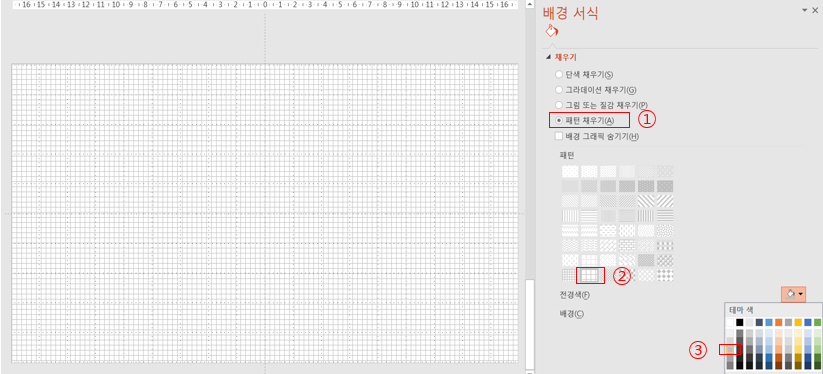 2. 배경서식> 채우기> 패턴채우기