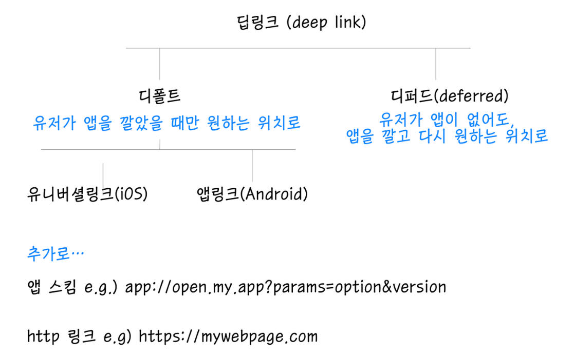 https://developers.naver.com/docs/utils/mobileapp/ https://developer.apple.com/library/archive/documentation/General/Conceptual/AppSearch/UniversalLinks.html https://developer.android.com/training/app-links/deep-linking?authuser=0 https://www.adjust.com/blog/dive-into-deeplinking/ https://developer.android.com/training/app-links/verify-site-associations?authuser=0#the-difference