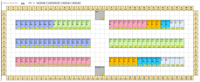 Server 가 설치된 Rack, 스토리지 Rack 등 구분 색상을 다르게 하여 쉽게 파악 할 수 있으며