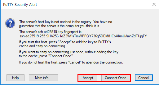이건 호스트 key 값을 레지스트리에 저장할건지 묻는건데 편하신상태로 해주시면됩니다