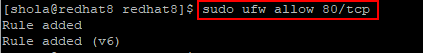$ sudo ufw allow 80/tcp