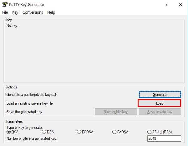 이 .key 파일을 .ppk로 변경하기위해서는 PuttyGen 프로그램이 필요한데