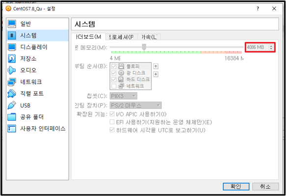HDD 크기는 60GB, 메모리는 4086MB로 했습니다.