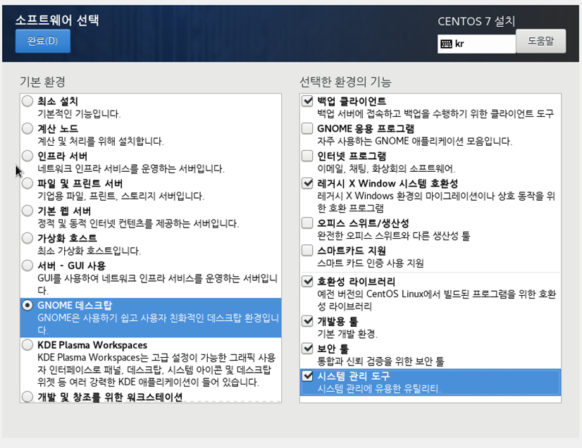참고로 CentOS7.8에 선택한 소프트웨어는 아래와 같습니다.