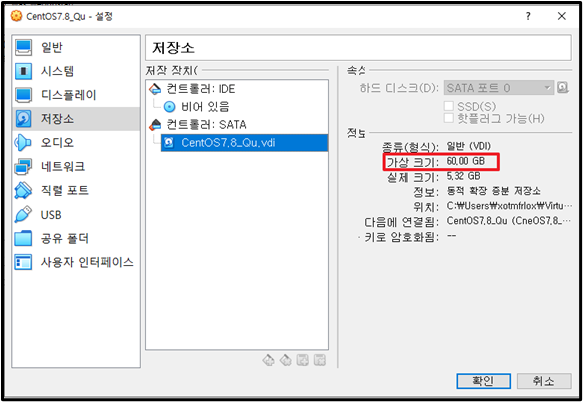 2. Virtualbox 가상 서버 스펙 확인