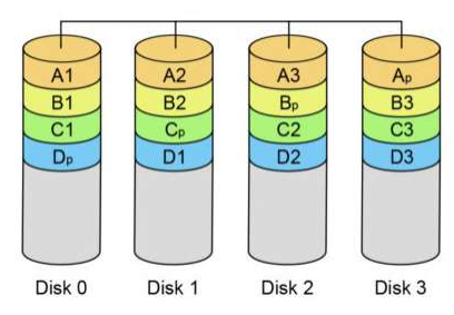 RAID-Z(RAID-5)의 경우 세 개 이상의 디스크에 데이터와 패리티 비트를 저장하는 구조이며 보통은 5 개 이상의 디스크를 사용합니다. 데이터별로 1 개의 패티리 비트를 사용하여 추후 디스크의 데이터 손실 시 복구용으로 사용합니다.