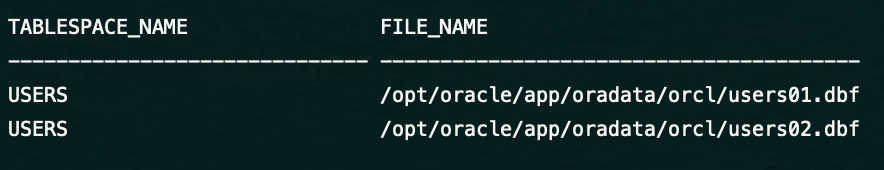 SYS@orcl> alter tablespace users add datafile '/opt/oracle/app/oradata/orcl/users02.dbf' size 10m;
