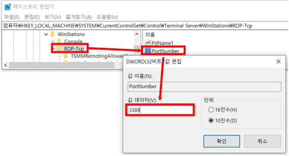 2. PortNumber 편집(예시: 3389 입력)