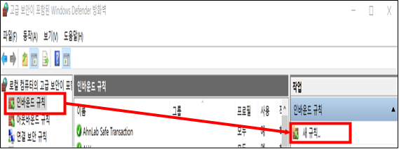 1) 고급 보안이 포함된 Windows Defender 방화벽 열기