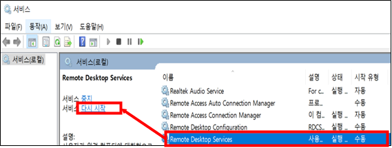 3) 서비스 재기동(Remote Desktop Services)