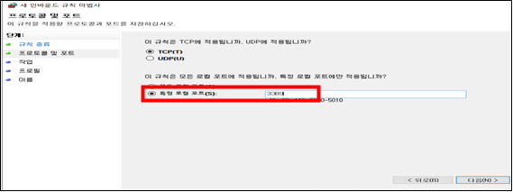 2) 포트 입력 및 허용