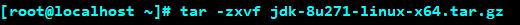 # tar -zxvf jdk-8u271-linux-x64.tar.gz 명령어로 압축을 풀어줍니다.