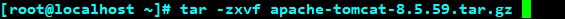 # tar -zxvf apache-tomcat-8.5.59.tar.gz 명령어로 압축을 풀어줍니다.