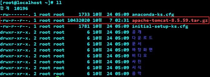 다운완료 되고 # ll 명령어로 파일 확인을 합니다.