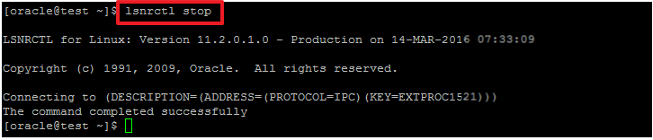 $ lsnrctl stop