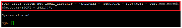 alter system set local_listener = "(ADDRESS = (PROTOCOL = TCP)(HOST = 서버IP)(PORT = 2521))";