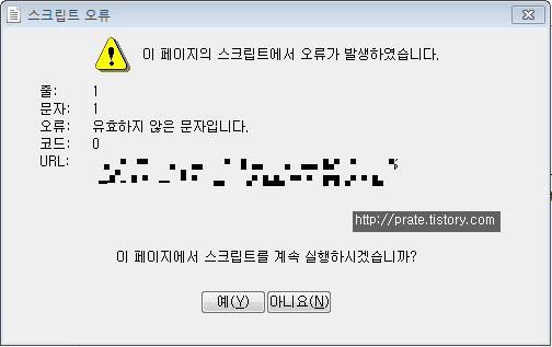- 특정 기능 실행 시 웹 브라우저에서 스크립트 오류가 발생하는 경우이다.