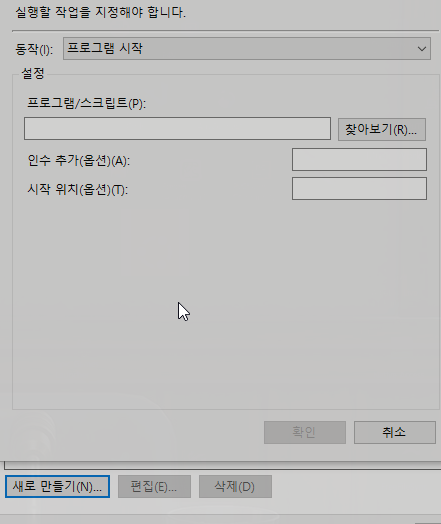 새로 만들기를 누른 후 작업 시작 드롭박스를 눌로보면 여러가지가 나오는데 그 중 wsl의 ip는 컴퓨터가 새로 시작할 때 바뀌기 때문에 시작할 때를 선택하고 확인을 누르면 된다.