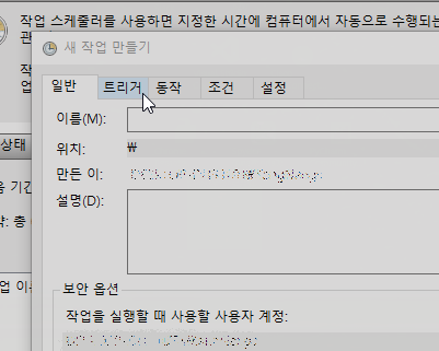 적당한 이름을 입력하고 트리거 탭을 누른다.